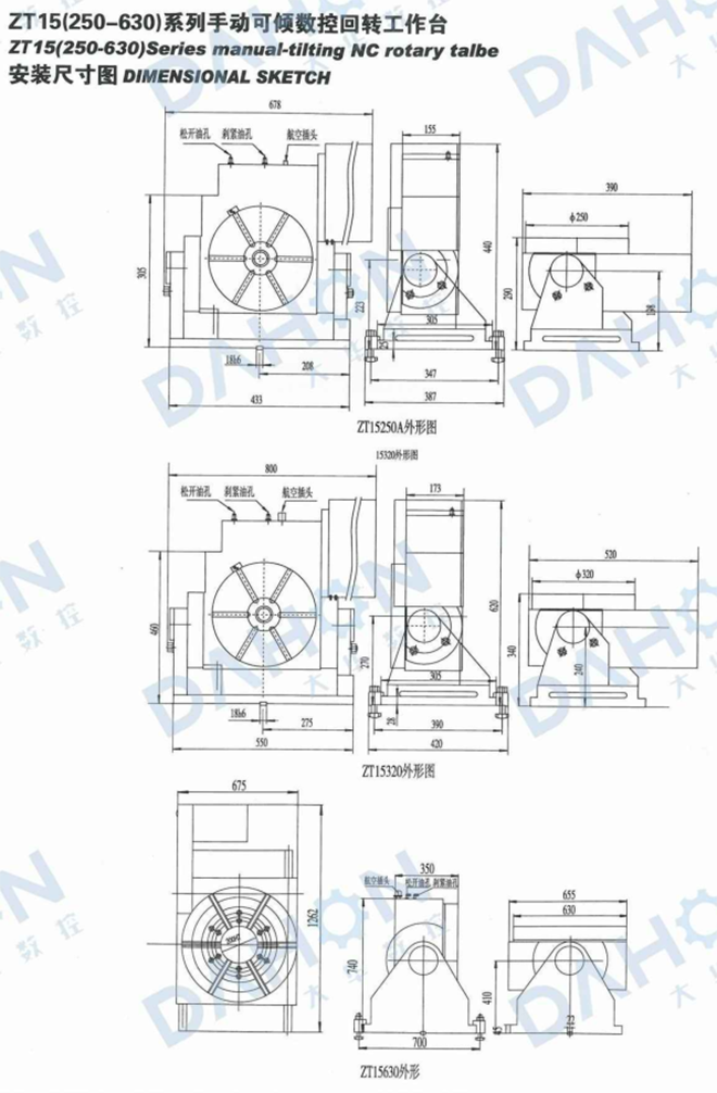 mainly used with CNC milling machine and machining center. Incombination with main machine,holes,slots,cam,curving line can becarri ed out.In combination with main machine,holes,slots,cam,curvingline can be carried out preisely.The table can be tilted to any anglebetween 0 and 90 to horizontal by manual.