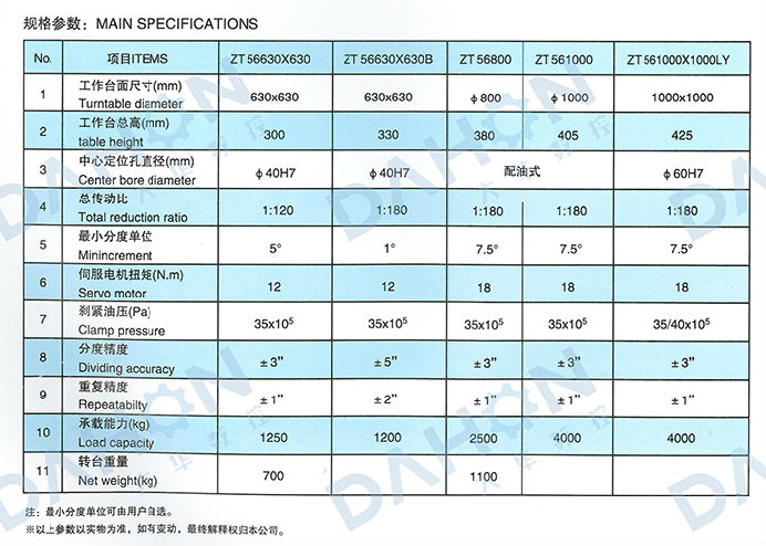 • 產品名稱: 湖北ZT56(630-1000)系列數控等分回轉工作臺