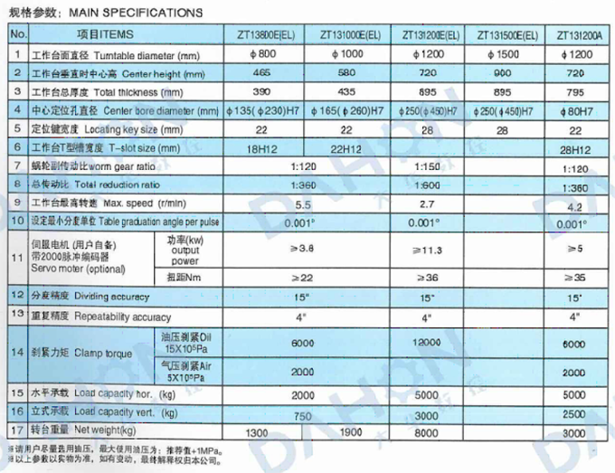 • 產品名稱: 江蘇ZT13(800-1200)EEL&ZT131200A系列立臥兩用(大型)數控回轉工作臺