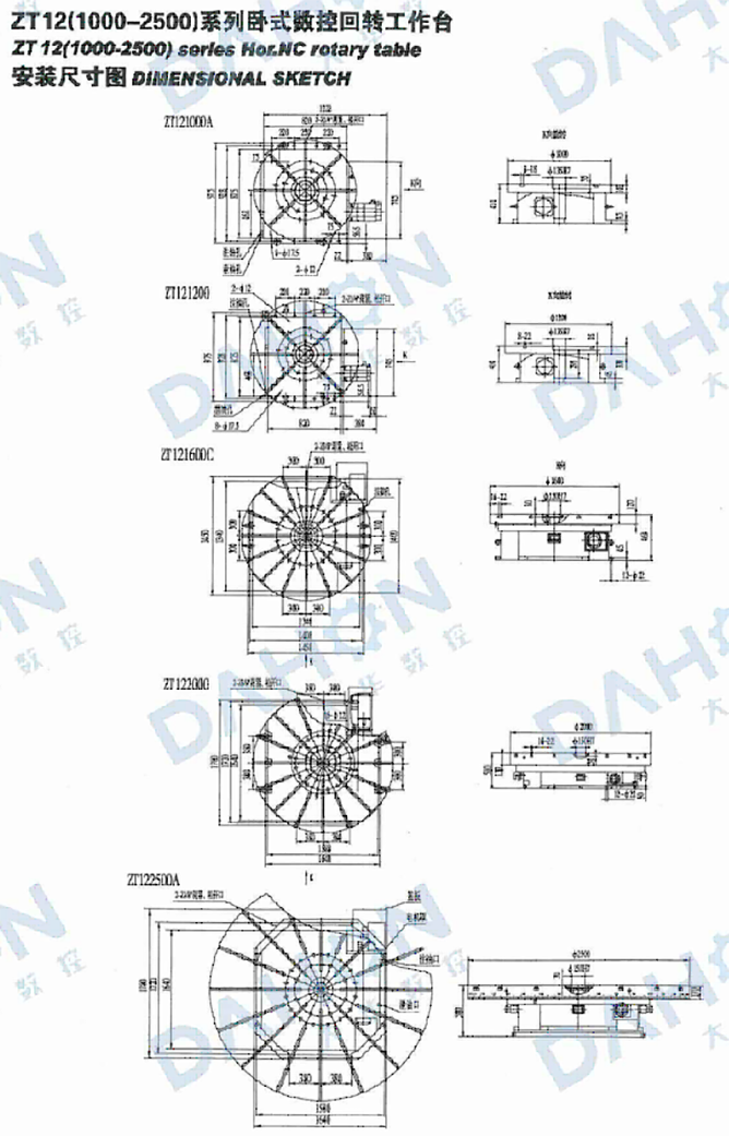可以 據用戶要求提供矩形或者圓形工作臺d ZT 121600、ZT 122000、ZT122500A轉臺裝角度編碼器后分精度達土2”。)